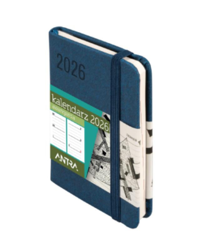 Tygodniowy kalendarz w formacie 7,7x11 cm z kolorową okładką. Zamykany na gumkę.