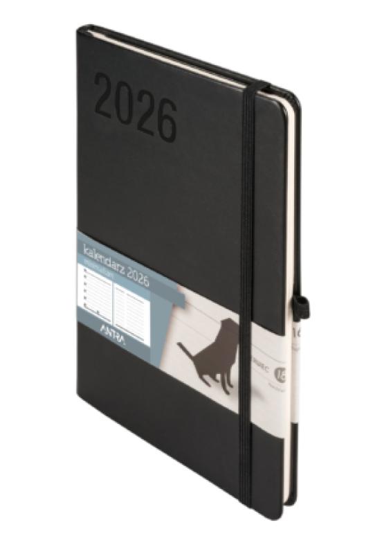 Tygodniowy kalendarz w formacie A5 z twardą okładką. Zamykany na gumkę.